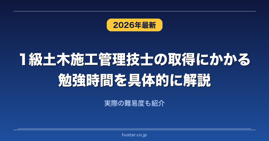 実際に1級土木施工管理技士を取得した合格者の平均的な勉強時間は600〜900時間程度です。土木分野の実務経験が5年以上ある方は600時間前後で合格しているケースが多く見られます。
