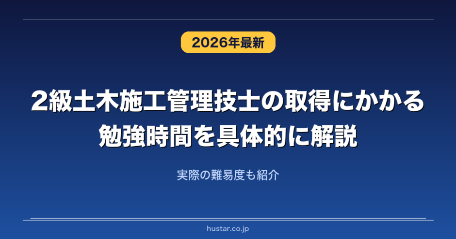 2級土木施工管理技士の取得に0からどれくらいの勉強時間がかかるのか解説します。また2級土木施工管理技士のレベル別の勉強時間や合格率や実際の難易度を解説します。2級土木施工管理技士の実際に合格した人の勉強期間や勉強内容や試験範囲や合格するためのコツについて知りたいという方はぜひ参考にしてみてください。