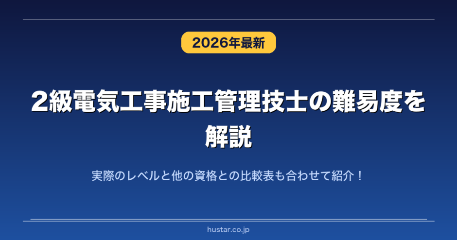 2級電気工事施工管理技士の実際の難易度を解説します。また2級電気工事施工管理技士のレベルや合格にかかる勉強時間や合格率や他の資格との難易度の比較についてそれぞれ具体的に解説します。2級電気工事施工管理技士を取得したいと考えている人はぜひ参考にしてみてください。