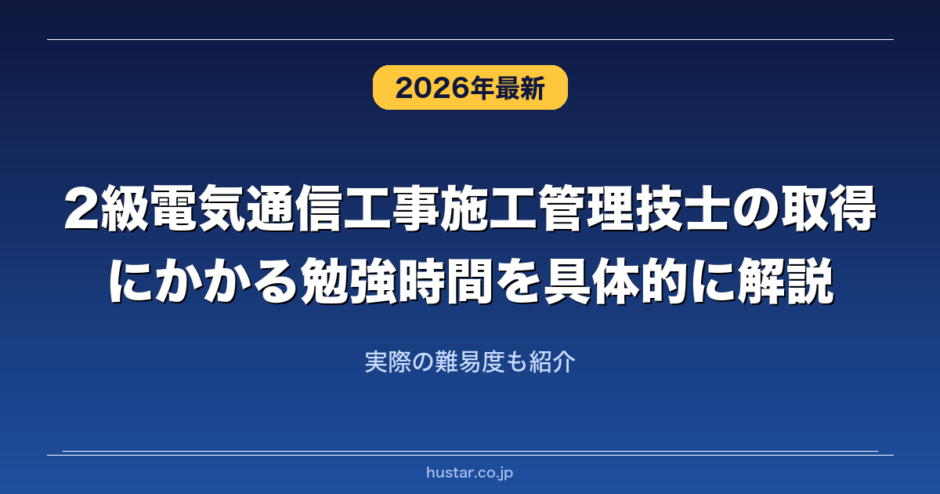 2級電気通信工事施工管理技士の取得に0からどれくらいの勉強時間がかかるのか解説します。また2級電気通信工事施工管理技士のレベル別の勉強時間や合格率や実際の難易度を解説します。2級電気通信工事施工管理技士の実際に合格した人の勉強期間や勉強内容や試験範囲や合格するためのコツについて知りたいという方はぜひ参考にしてみてください。