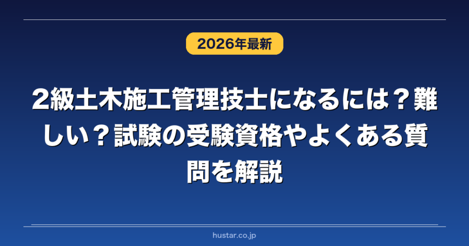 2級土木施工管理技士の試験を受験するために必要な受験資格について解説します。また2級土木施工管理技士の価値や合格したらできることや実際の仕事内容についても合わせて解説します。2級土木施工管理技士に合格するためのやるべき勉強の順番から具体的や勉強スケジュールの目安も合わせて解説します。