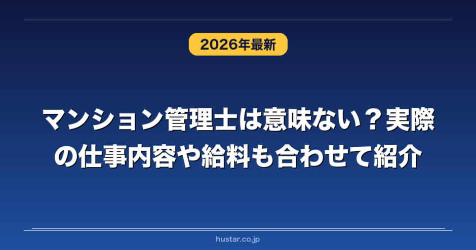 マンション管理士は意味がないのかや仕事内容について解説します。またマンション管理士の実際のメリットとデメリットを必要な勉強時間や平均年収や実際の労働時間なども含めて様々な視点から解説します。マンション管理士の仕事内容の中で実際の1日の仕事の流れや残業時間やきつい仕事があるかどうかを具体的に解説します。