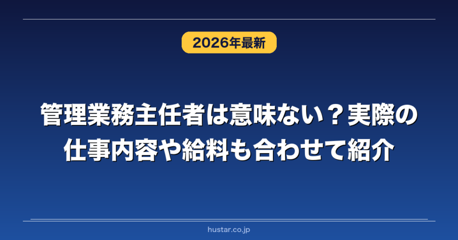 管理業務主任者は意味がないのかや仕事内容について解説します。また管理業務主任者の実際のメリットとデメリットを必要な勉強時間や平均年収や実際の労働時間なども含めて様々な視点から解説します。管理業務主任者の仕事内容の中で実際の1日の仕事の流れや残業時間やきつい仕事があるかどうかを具体的に解説します。