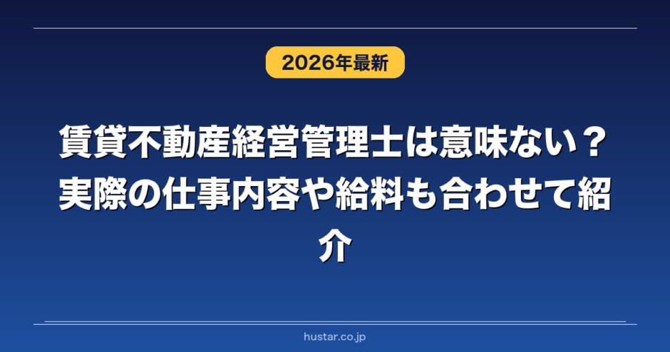 賃貸不動産経営管理士は意味がないのかや仕事内容について解説します。また賃貸不動産経営管理士の実際のメリットとデメリットを必要な勉強時間や平均年収や実際の労働時間なども含めて様々な視点から解説します。賃貸不動産経営管理士の仕事内容の中で実際の1日の仕事の流れや残業時間やきつい仕事があるかどうかを具体的に解説します。
