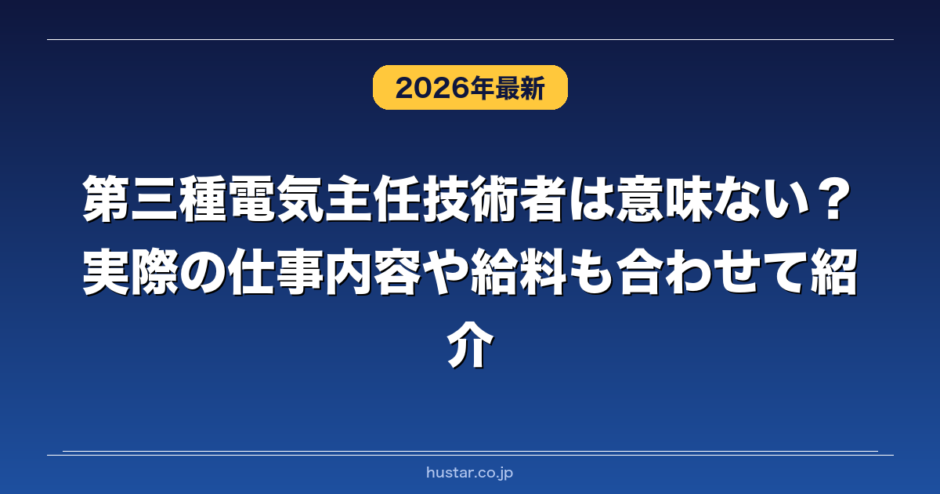 第三種電気主任技術者は意味がないのかや仕事内容について解説します。また第三種電気主任技術者の実際のメリットとデメリットを必要な勉強時間や平均年収や実際の労働時間なども含めて様々な視点から解説します。第三種電気主任技術者の仕事内容の中で実際の1日の仕事の流れや残業時間やきつい仕事があるかどうかを具体的に解説します。