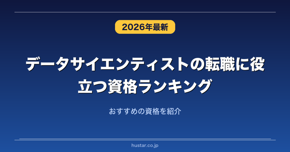 データサイエンティストの転職に役立つおすすめの資格をランキング形式で紹介します。また実際にデータサイエンティストの転職に役立ったおすすめの資格から資格ごとの難易度や年収や勉強時間もそれぞれ解説します。またデータサイエンティストの転職に役立つ資格のおすすめの選び方を解説します。