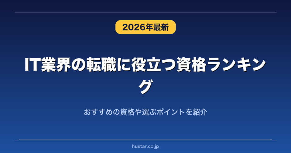 IT業界の転職を目指す方にとって、まず取得を検討すべき資格のTOP5をまとめました。1位の基本情報技術者試験はIT業界の入門資格として広く知られており、未経験からの転職でも評価されやすい資格です。2位のAWS認定資格はクラウド需要の高まりとともに市場価値が上昇しており、取得することで年収アップが期待できます。転職活動において、これらの資格は採用担当者への強力なアピール材料になります。